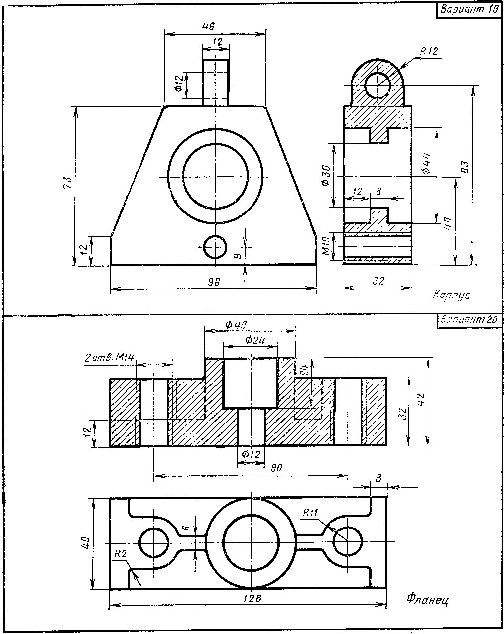 помогите Исправить ошибки на чертеже вариант 20 и построить главный вид по этим разрезам