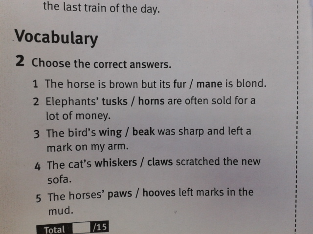 1. Mane 2. Tusks 3. Beak 4. Claws 5. Hooves