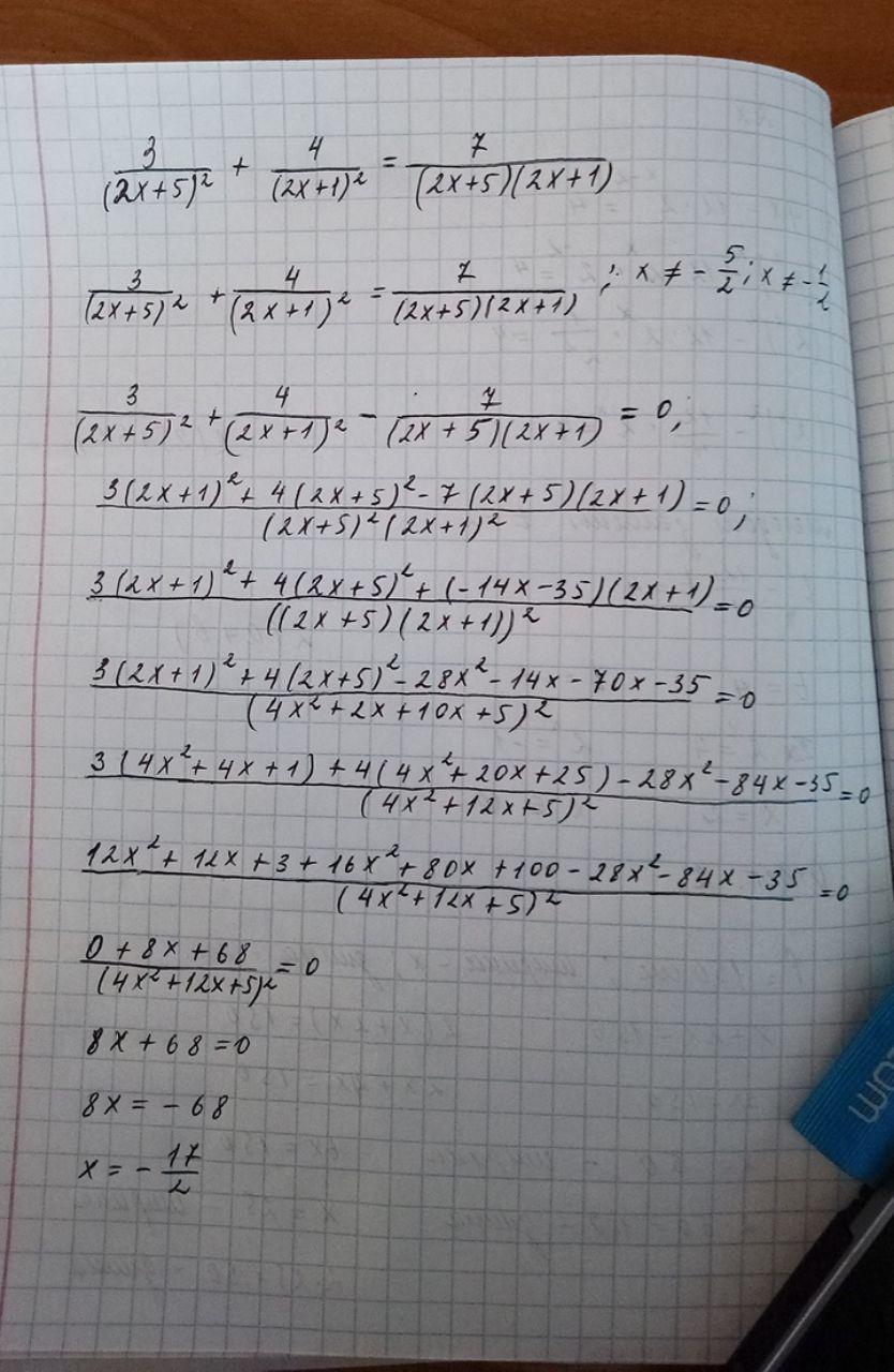 Записать все числители над наименьшим общим знаменателем (2x+5)²×(2x+1)²: