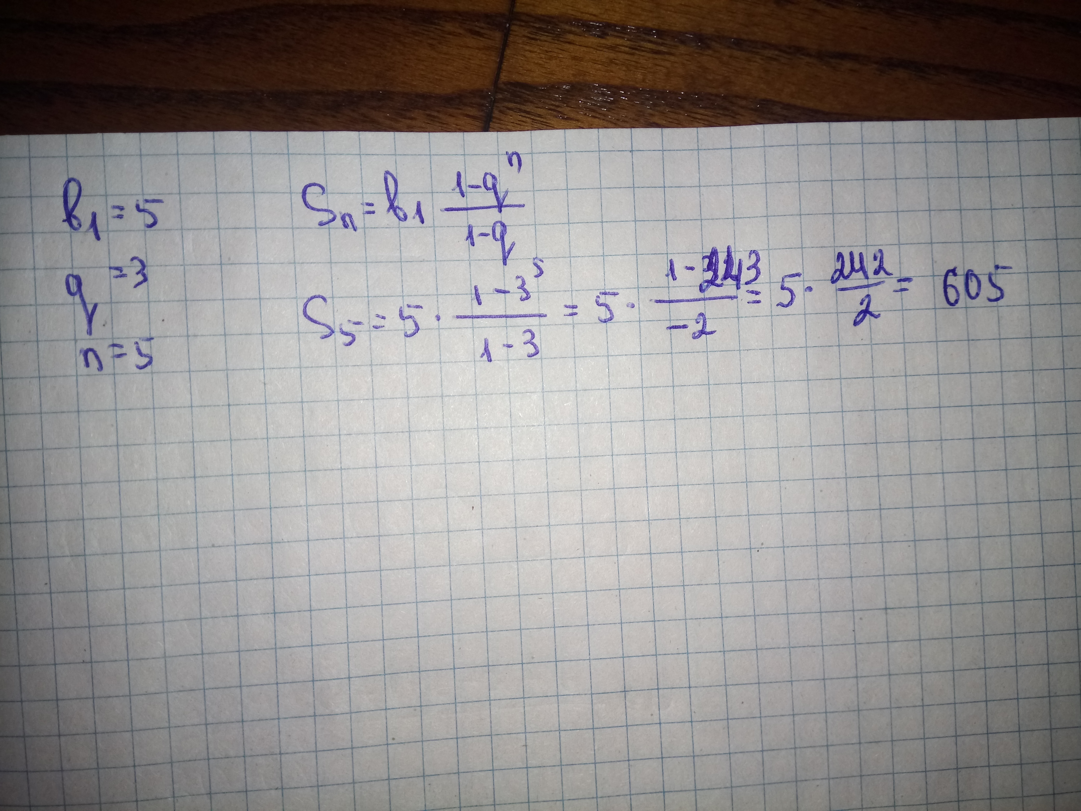 Найдите сумму n первых членов геометрической прогрессии, если b1=5; q=3;n=5 .