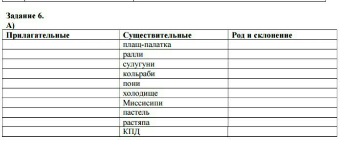 Сделайте пожалуйста прилагательное у ниже перечисленным словам (определение) и род, склонение