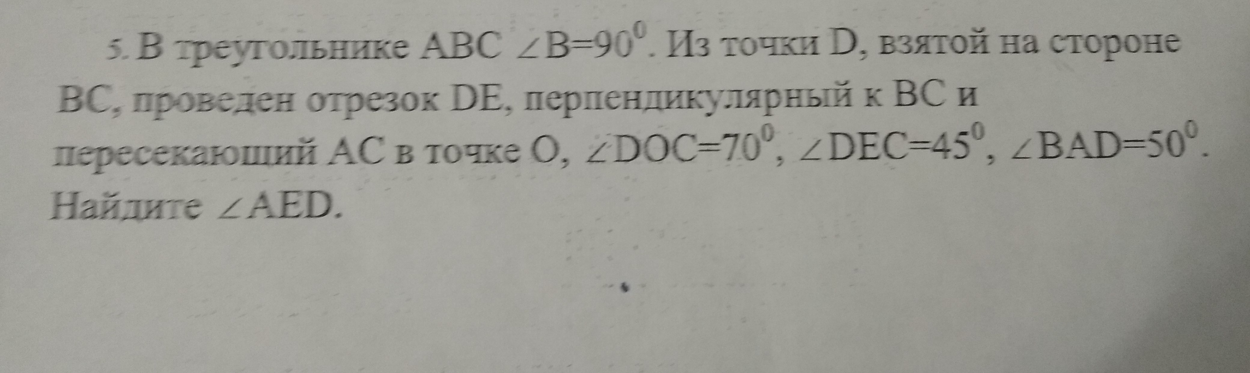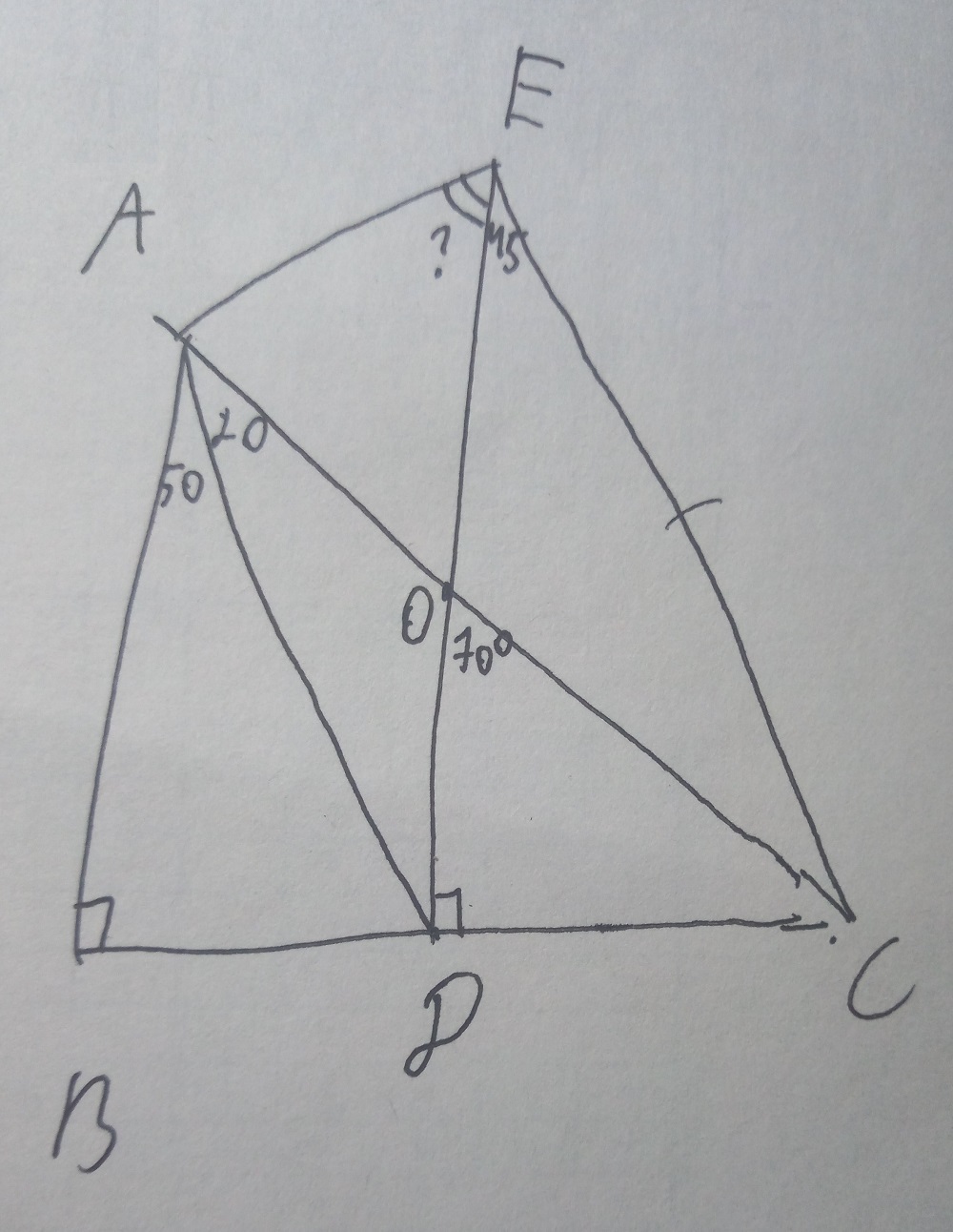 Угол DAO = 180 - ADO - DOA = 180 - 50 - 110 = 20