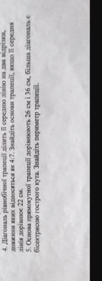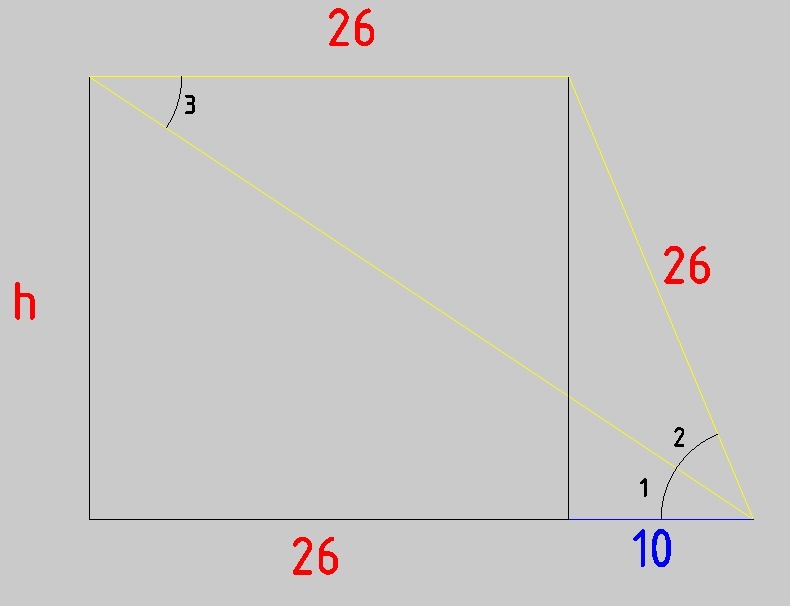 Значит жёлтый треугольник равнобедренный, и боковая сторона равна меньшему основанию, 26 см