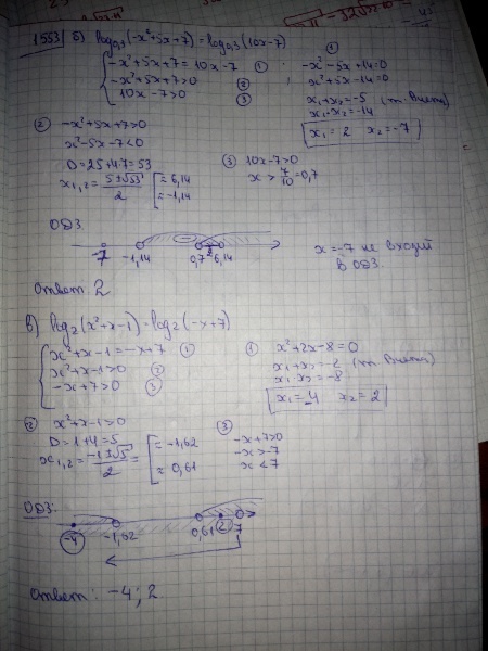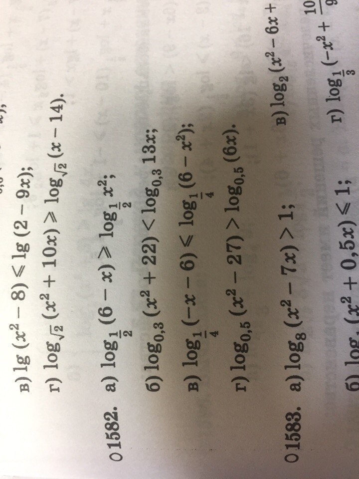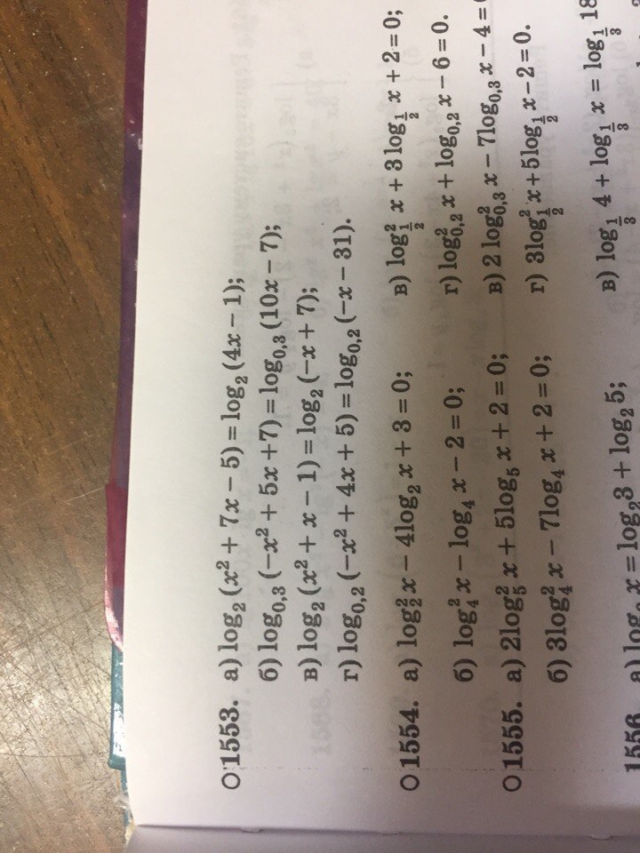 Ребята, прошу вас, выручите. С логарифмами вообще не дружу. №1553(б,в,г); №1582(а,б,г).