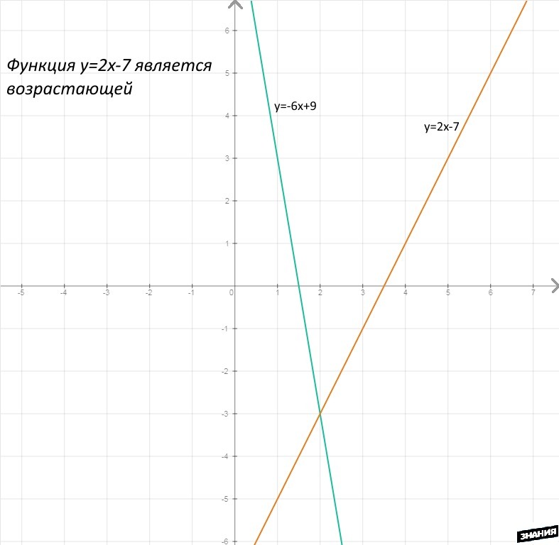 Постройте в одной системе координат графики функций у=-6х+9 и у=2х-7. Какая из этих функций является возрастающей?