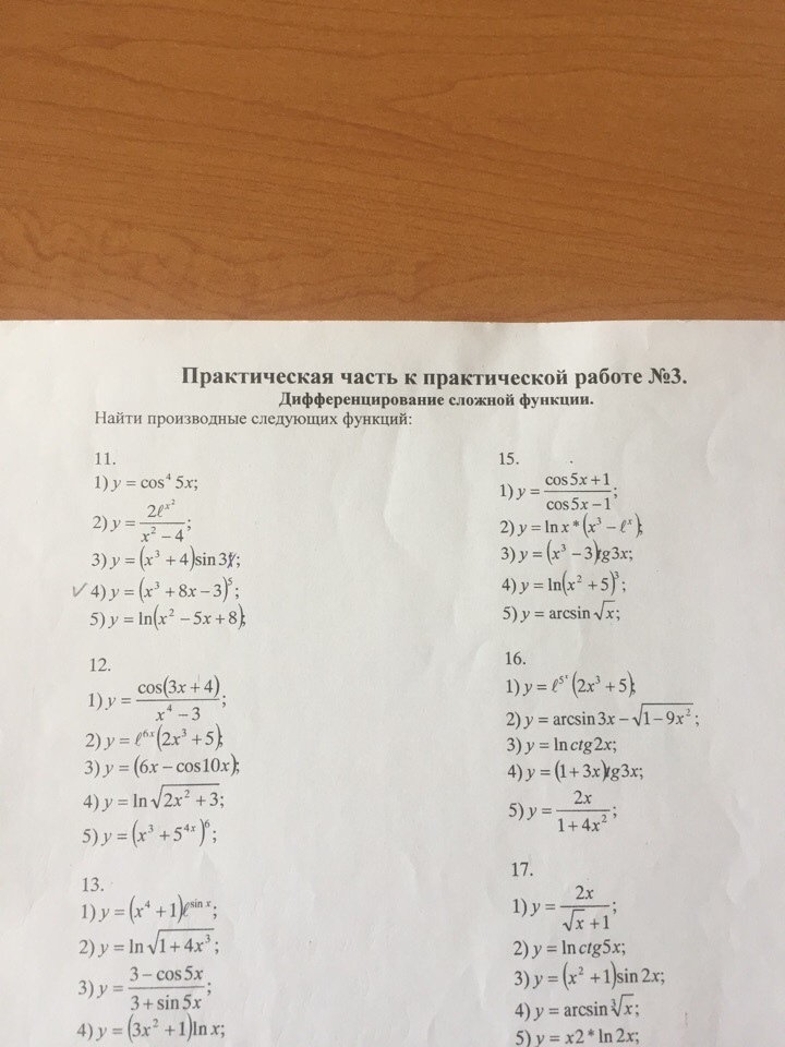 1); ; y=cos^45x\\y'=4, cos^35xcdot (-sin5x)cdot 5\\2); ; y=frac{2e^{x^2}}{x^2-4}\\y'=frac{2e^{x^2}cdot2xcdot (x^2-4)-2e^{x^2}cdot 2x}{(x^2-4)^2}=frac{4e^{x^2}cdot x^3-18e^{x^2}cdot x}{(x^2-4)^2}=frac{2xcdot e^{x^2}cdot (2x^2-9)}{(x^2-4)^2}\\3); ; y=(x^3+4), sin3x\\y'=3xcdot sinx+(x^3+4)cdot 3cos3x\\4); ; y=(x^3+8x-3)^5\\y'=5(x^3+8x-3)^4cdot (3x^2+8)