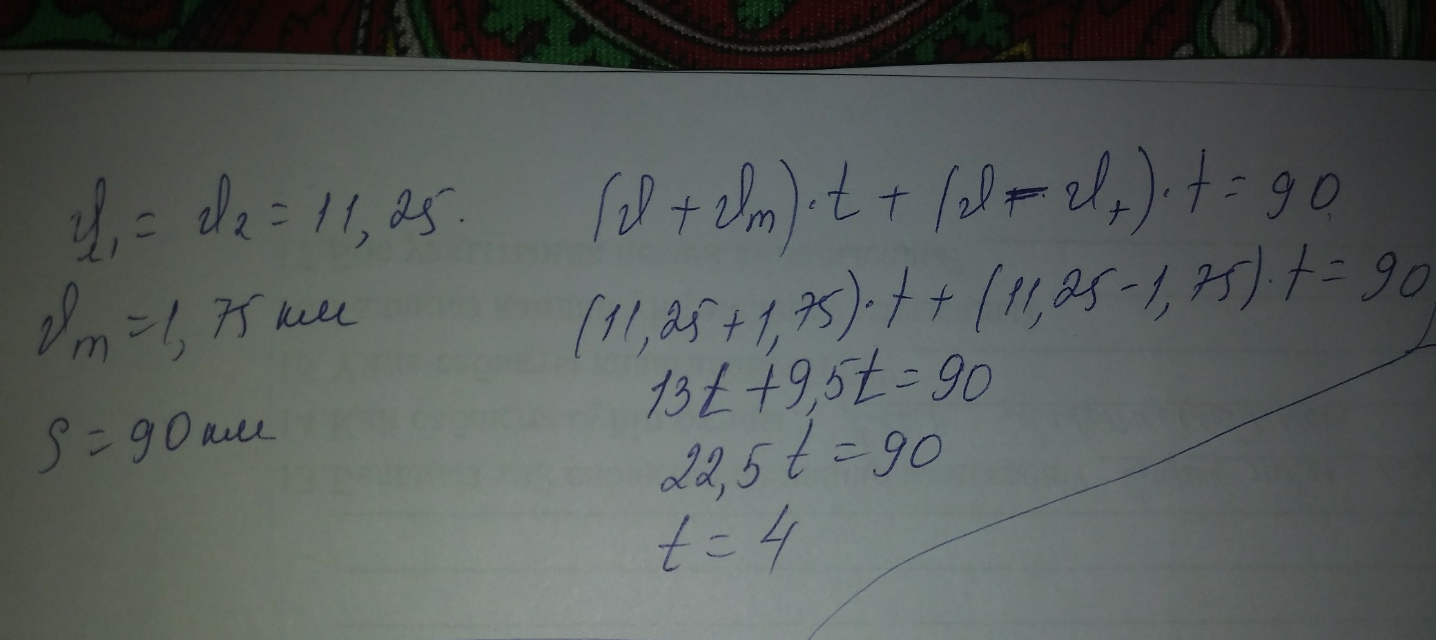 тояние между ними 90 км, а скорость течения 1,75 км/ч?