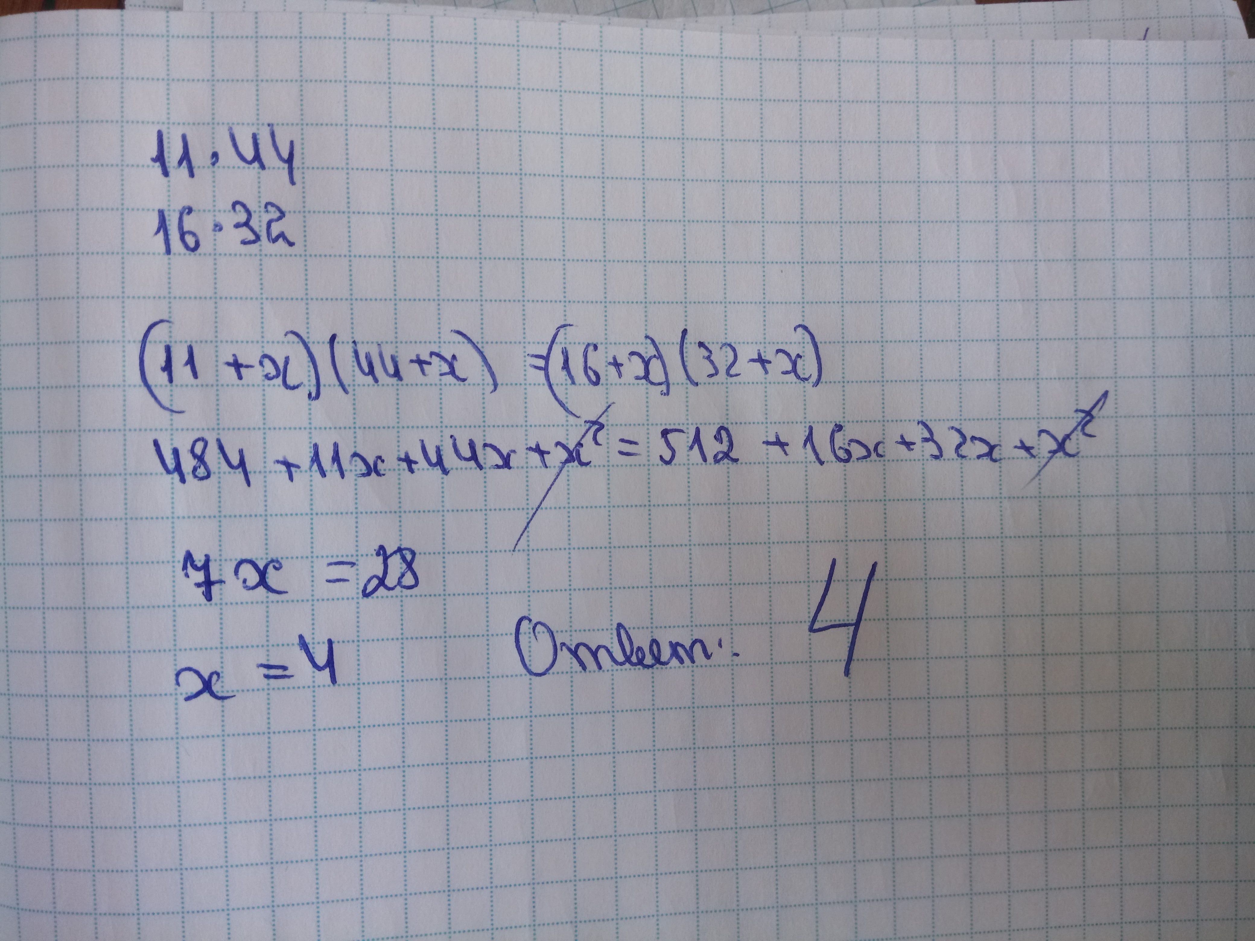 Даны два произведения: 11*44 и 16*32. На какое число следует увеличить каждый из четырех множителей, тчобы новые произведения равнялись друг другу?