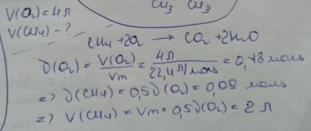 V(CH₄) = 0.5V(O₂) = 4 : 2 = 2л