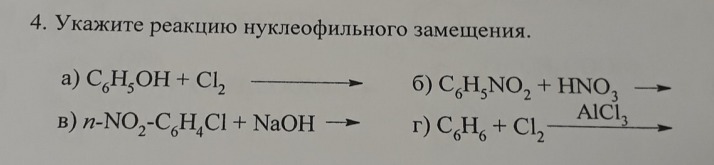 в) нуклеофил - ОН⁻, замещается Cl⁻в остальных случаях замещается Н⁺