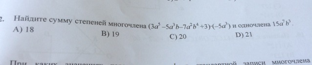 Степень многочлена - наибольшая степень одночлена, в него входящего. У данного многочлена степень 9(в него входит одночлен 7a^5 * b⁴), а у одночлена 10