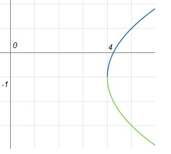 y(x) = +√ (4*(x-4)/3) -1 - верхняя ветвь параболы