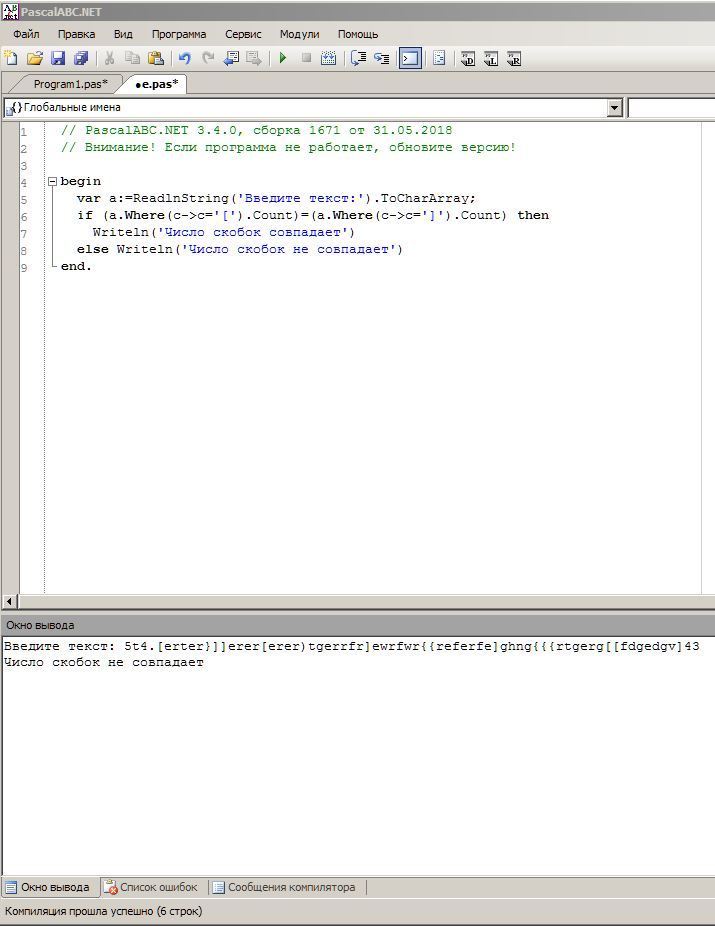 Writeln('Число скобок совпадает')