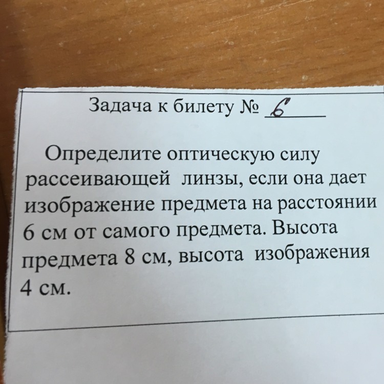 Подставим величины и получим что 1/2=f/d значит d=2f. f+d=6 значит d=4 а f=2.