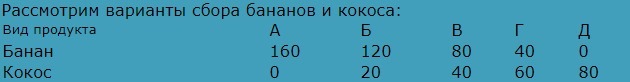 Избрав вариант А, экономика острова направит все ресурсы на сбор бананов, а при варианте Д, на острове будут собирать только кокосы. Альтернативная стоимость - это количество одного товара, которым необходимо пожертвовать для увеличения другого товара на единицу. Таким образом, альтернативная стоимость 1 банана вычисляется:20:40=0,5 , т.е. 1 банан=0,5 кокоса, для сбора одной дополнительной единицы банана, необходимо пожертвовать 0,5 кокоса. Альтернативная стоимость 1 кокоса:40:20=2, т.е. 1 кокос=2 бананам, для сбора 1 дополнительной единицы кокоса, необходимо пожертвовать 2 бананами.
