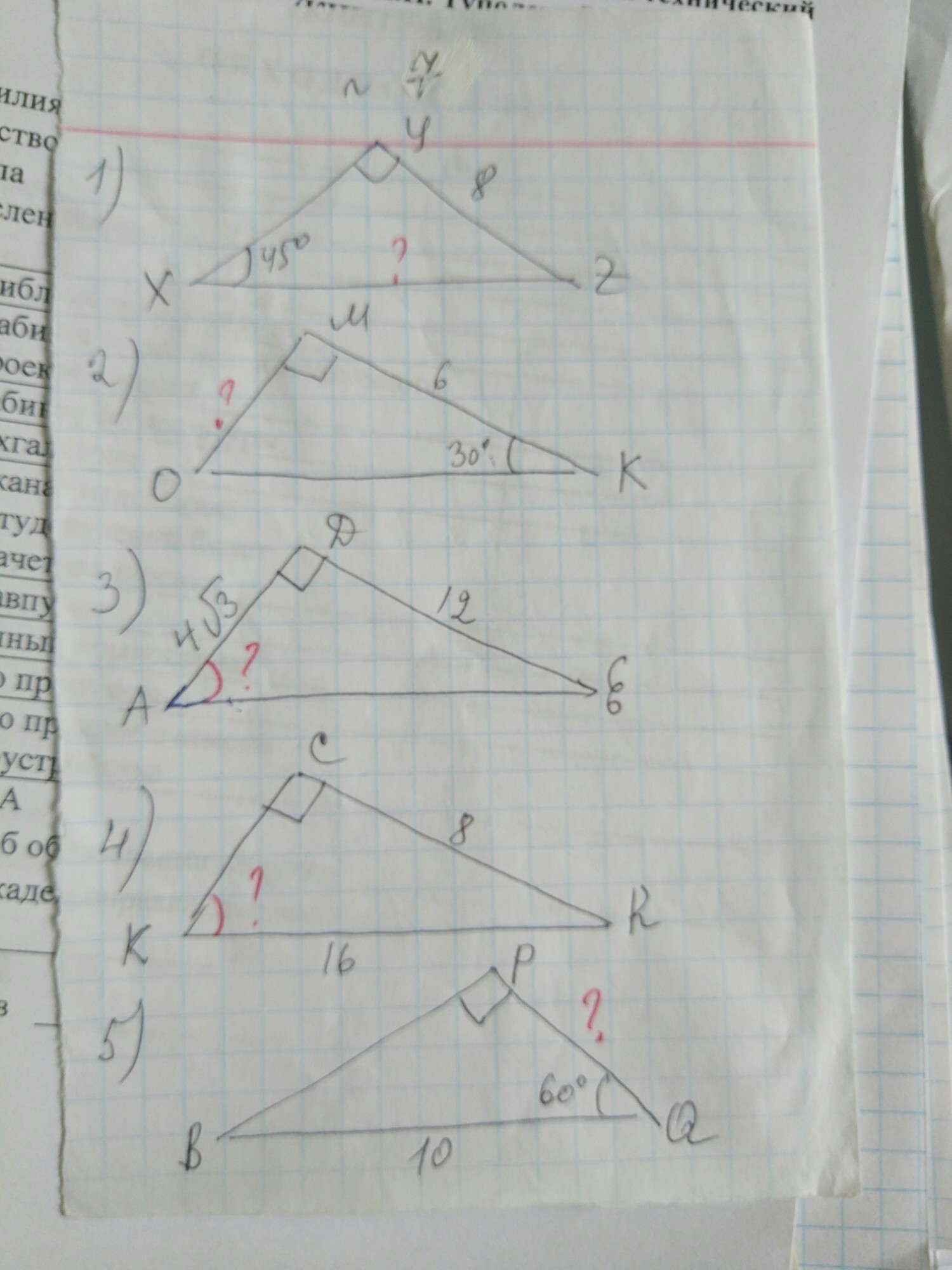 5) второй угол равен 30 градусов так как в сумме острые углы в прямоугольном треугольнике равны 90 градусов
