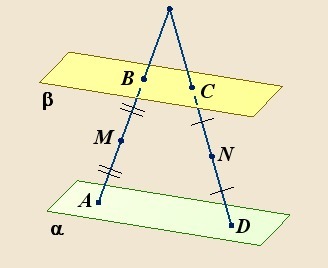 Первое. Так как диагонали четырёхугольника ABCD равны, то такой четырёхугольник является прямоугольником. И в точке пересечения диагонали делятся пополам.