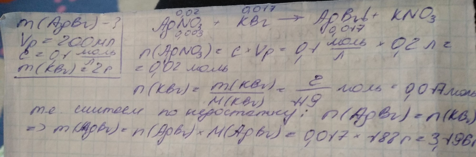 серебра объёмом 200 мл концентрации 0,1 моль/л прибавить 2 г бромида