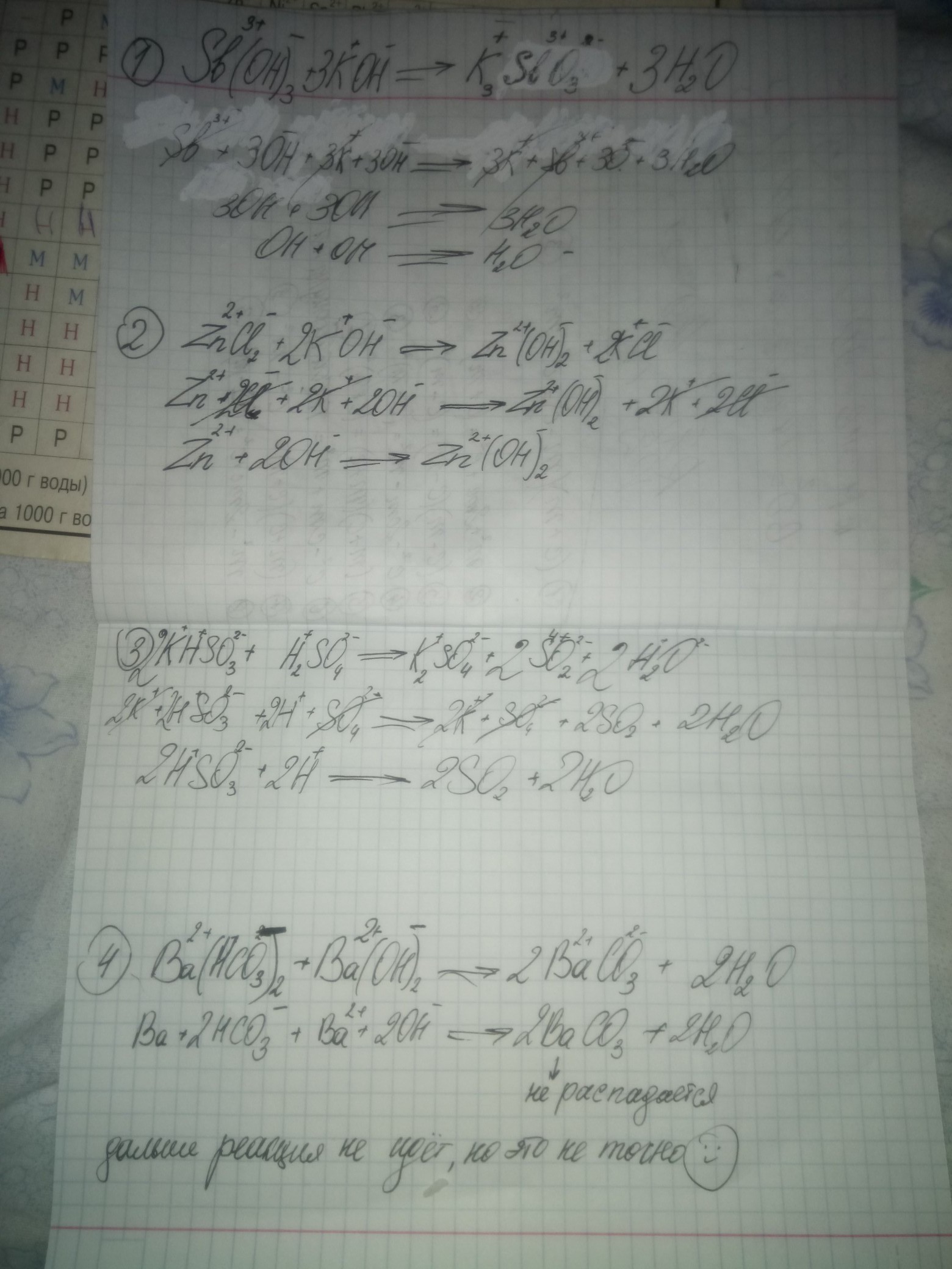1.Написать в молекулярной и ионной форме уравнения следующих реакций: