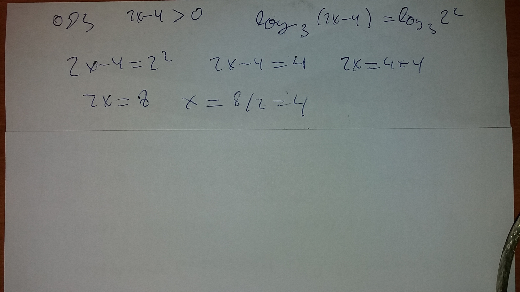 log3 (2x-4)=log3 2^2