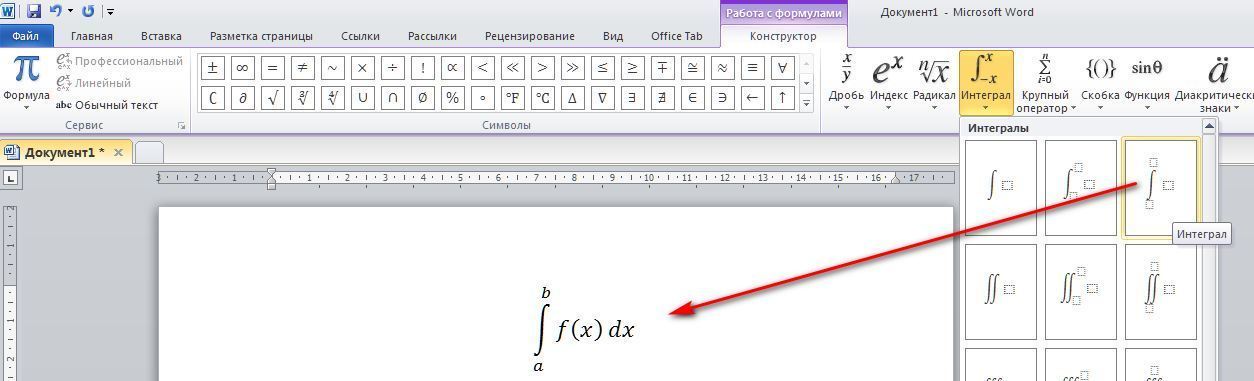 Помогите, пожалуйста (см. скриншот). Как сделать так, чтобы промежутки интеграла были над/под интегралом в документе Word?
