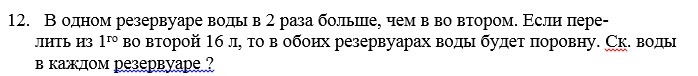 Пусть X л. воды во втором резервуаре, тогда в первом - 2x. Составим и решим уравнение.