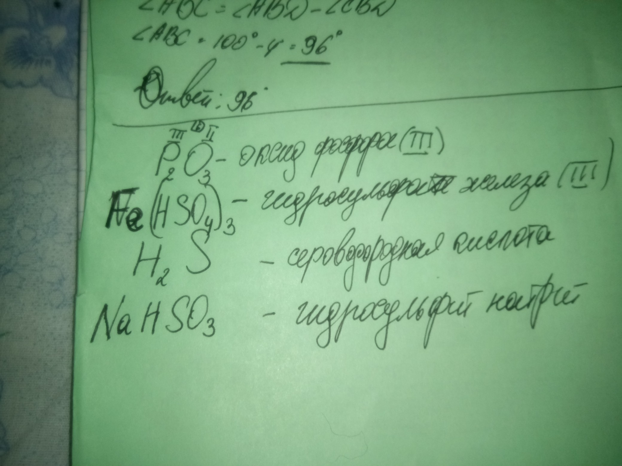 Составьте формулы веществ: Оксида фосфора(III), гидроксосульфата железа (III), сероводородной кислоты, гидросульфита натрия