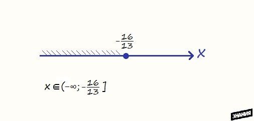 13x leq -16 \ \ x leq - dfrac{16}{13} \ \ \