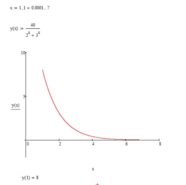 Найдите наибольшее значение функции y = 40/(2^x + 3^x) на отрезке [1;7].