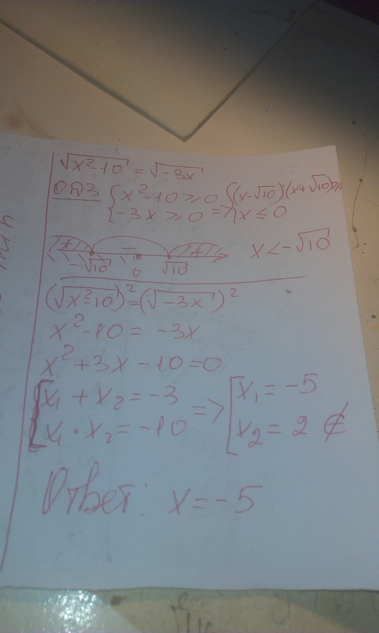 √x²-10=√-3x