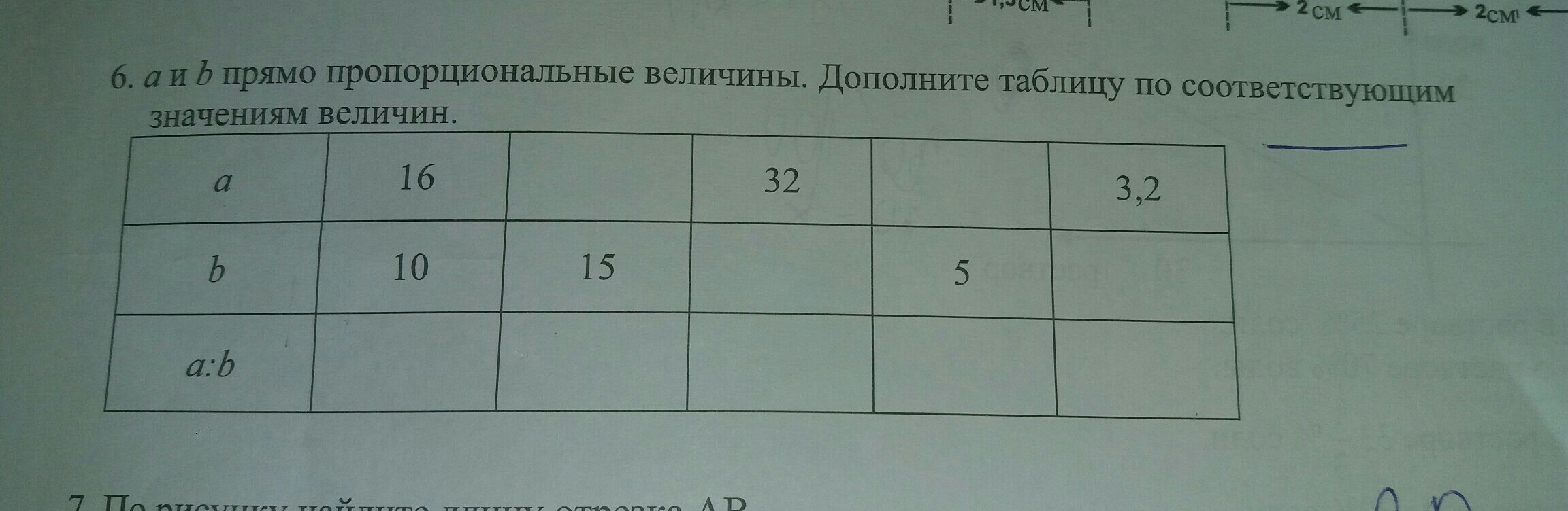 a к b относится как 16 к 10, то есть а в 1,6 раз больше чем b. ( a=1,6*b - это и есть прямая пропорциональность). Значит она должна сохраняться и в последующих столбцах таблицы, а значит 15*1,6=24, 32/1,6=20, 5*1,6=8, 3,2/1,6=2. Вот как-то так.