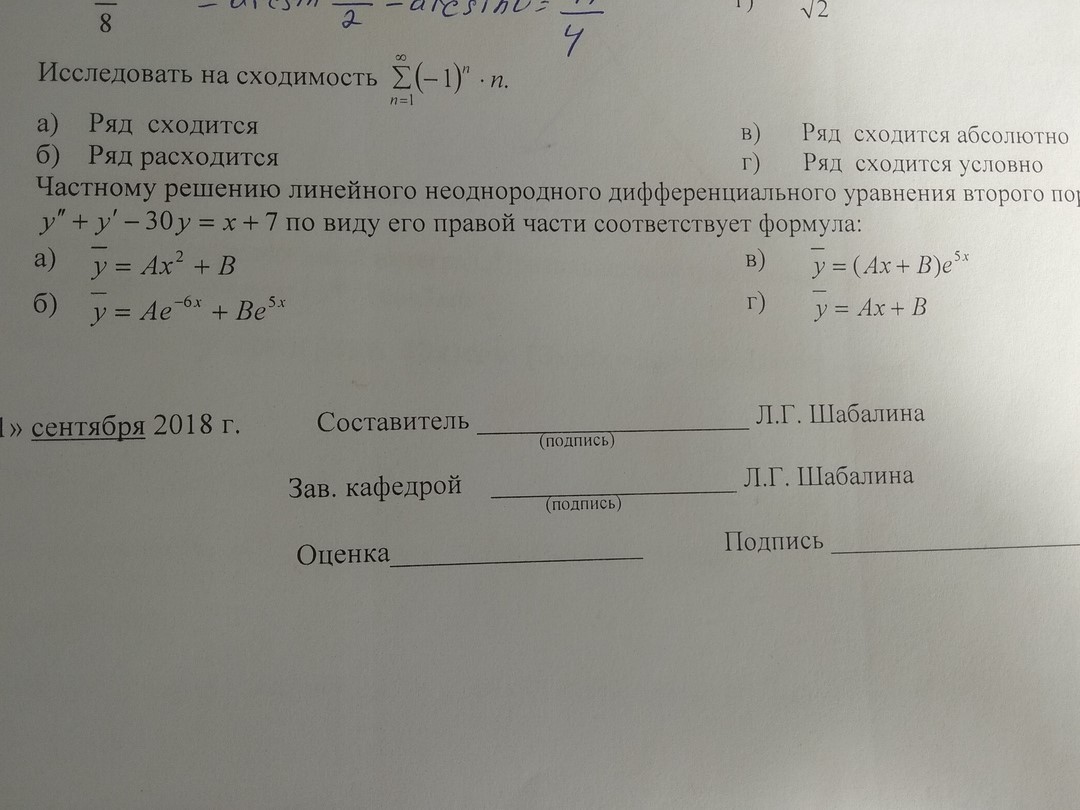 то это ряд расходится, так как не выполняется необходимый признак сходимости ряда,т.е.