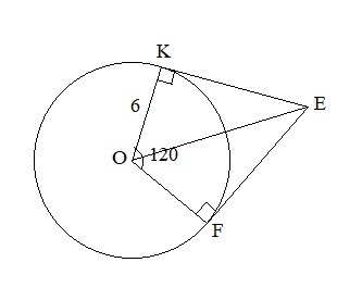 EK и EF- отрезки касательных, проведённых к окружности с центром O и радиусом,равным 6 см,угол KOF=120градусов.Найдите OE.