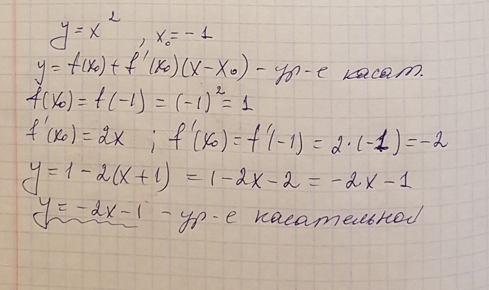 составить уравнение касательной проведенной к графику функции y=x^2 в точке с абсциссой x=-1