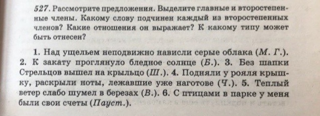 Над ущельем неподвижно нависли- сказуемое серые облака- подлежащее. К закату проглянуло- сказуемое бледное солнце- подлежащее. Без шапки Стрельцов- подлежащее вошел- сказуемое на крыльцо. Подняли- сказуемое у рояля крышку раскрыли- сказуемое Ноты ты уже лежавшие наготове. Тёплый ветер- подлежащее слабо шумел- сказуемое берёзах. С птицами в парке у меня были-сказуемое свои счеты- подлежащее.