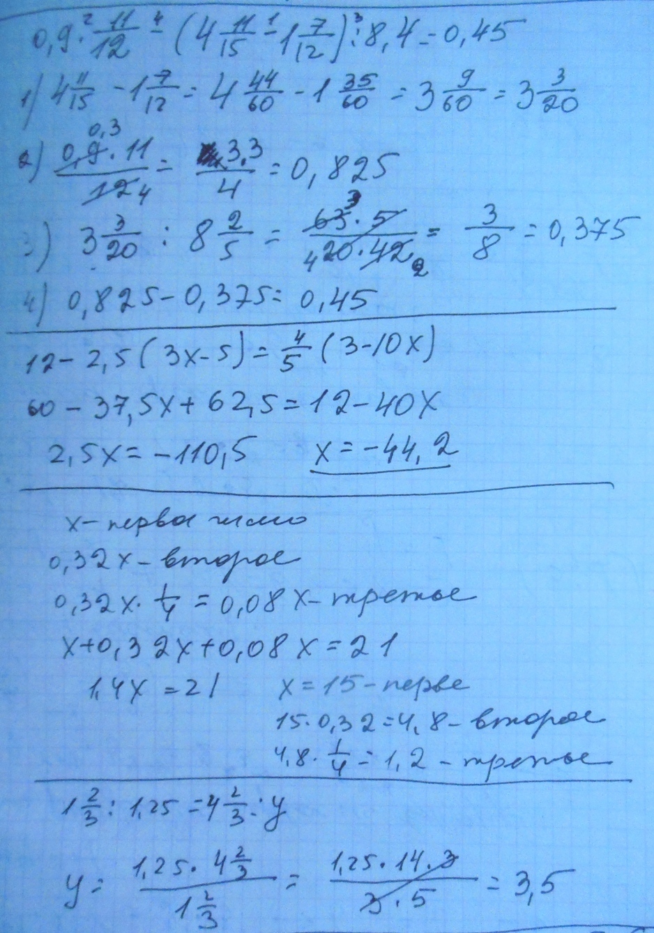 2.Решите уравнение: 12-2,5*(3x-5)=45*(3-10x)/