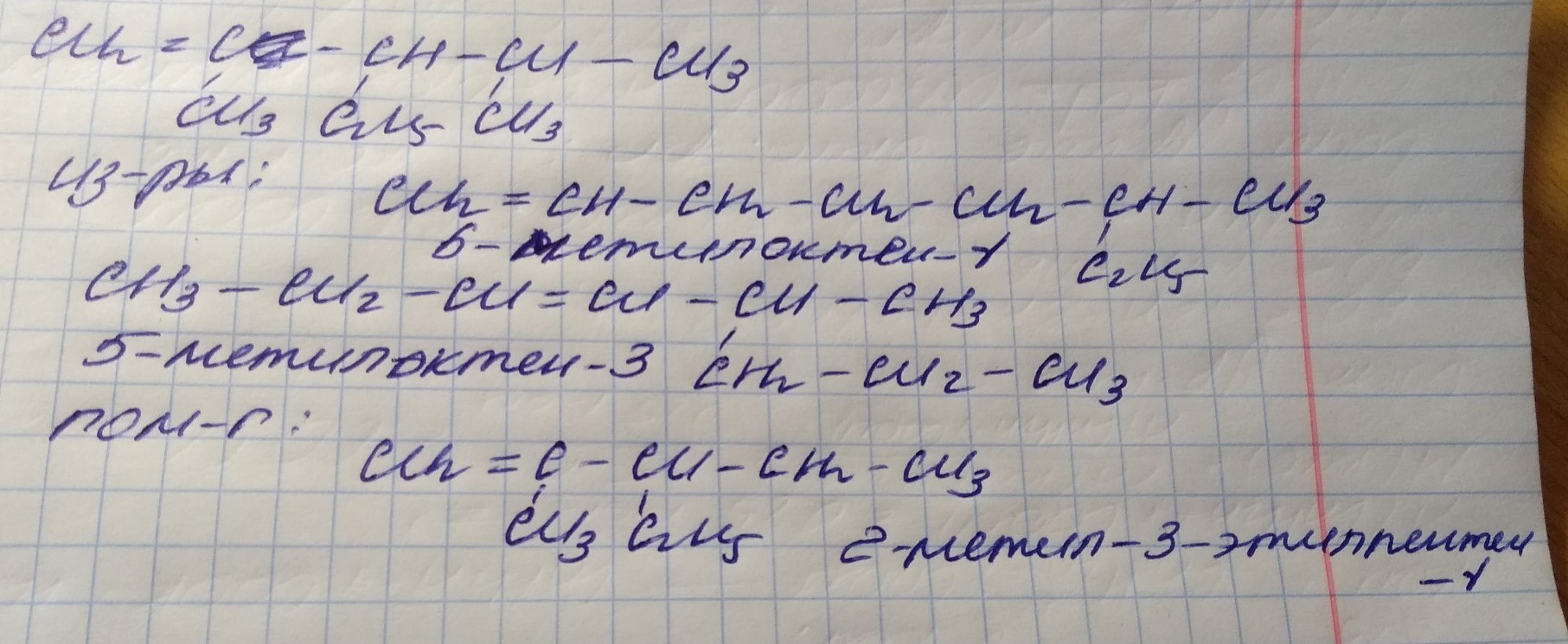 Для углеводорода 2,4-диметил-3-этилпентена-1 записать его структурную формулу,структурные формулы 2-ух его изомеров разного вида и 1 гомолога.