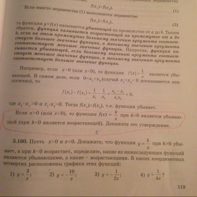 Получили, что при х₁<x₂ имеем y(x₁)-y(x₂)>0 , а значит y(x₁)>y(x₂) , то есть функция убывает (по определению).