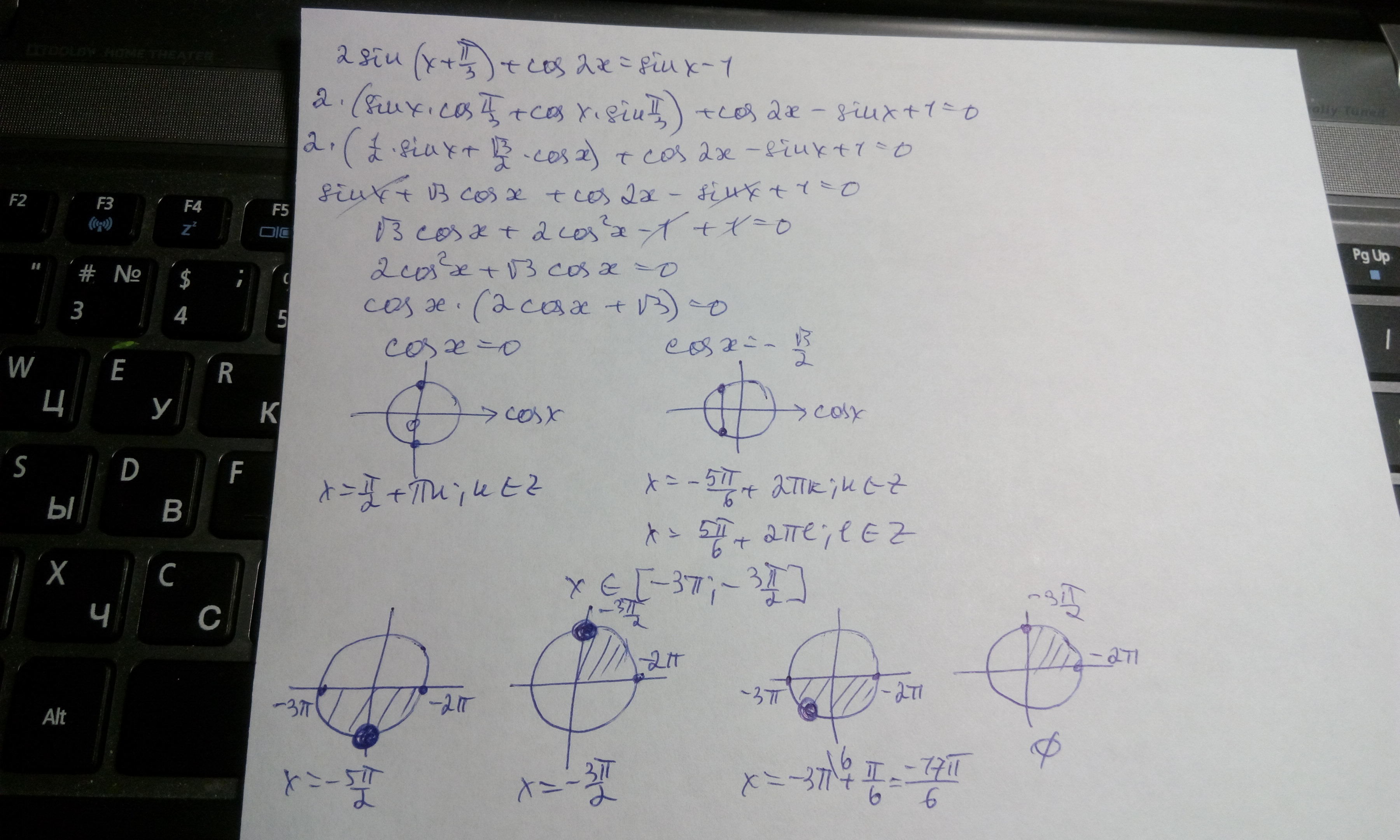 а) решите уравнение 2sin(x+π/3)+cos(2x)=sinx-1 б) найти корни на промежутке [-3π;-3π/2]