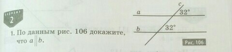 Так как углы (по 32 градуса) равны как соответственные при секущей с, то прямые параллельны.