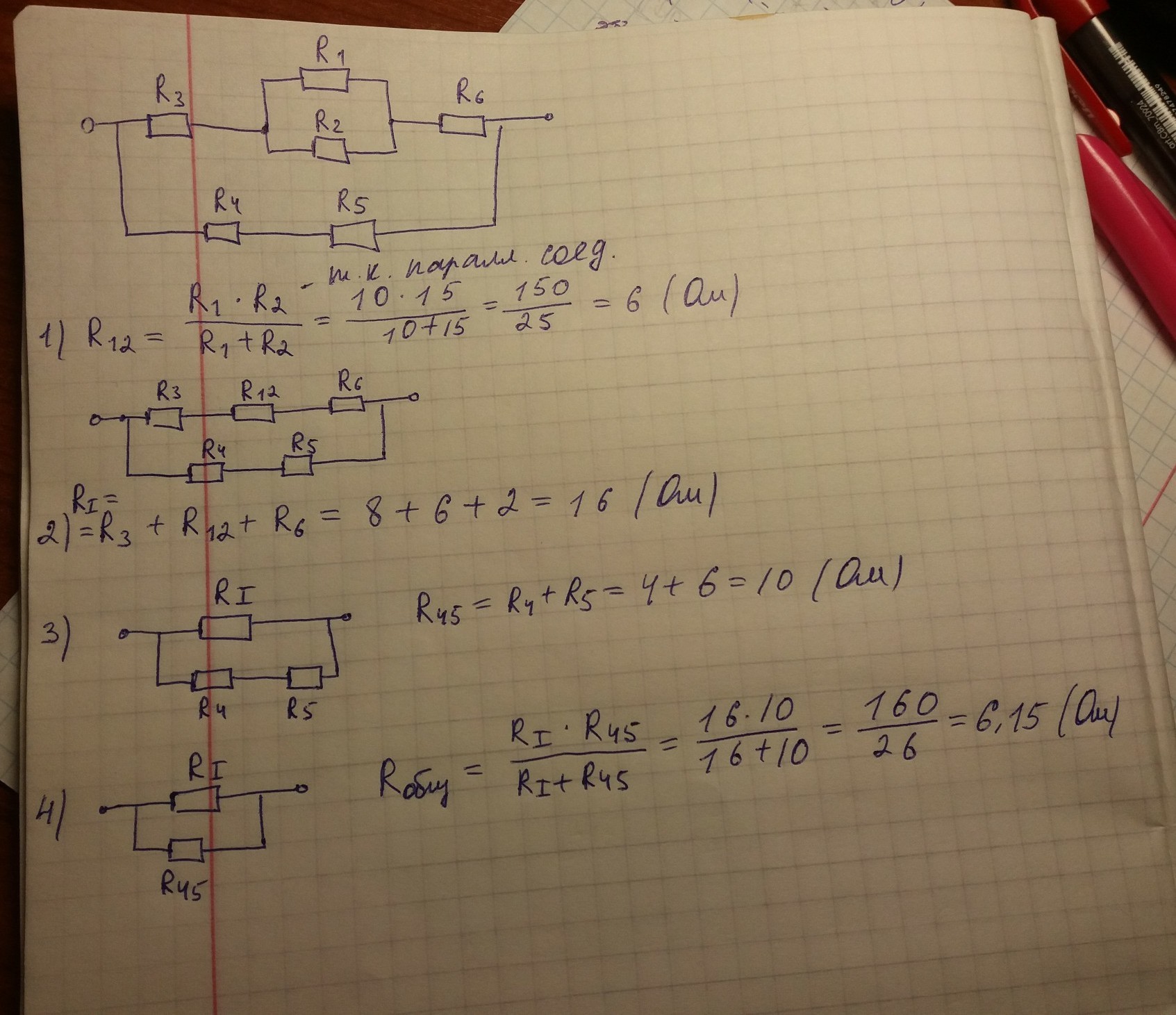 R12=R1*R2/(R1+R2)=10*15/(10+15)=6 Ом