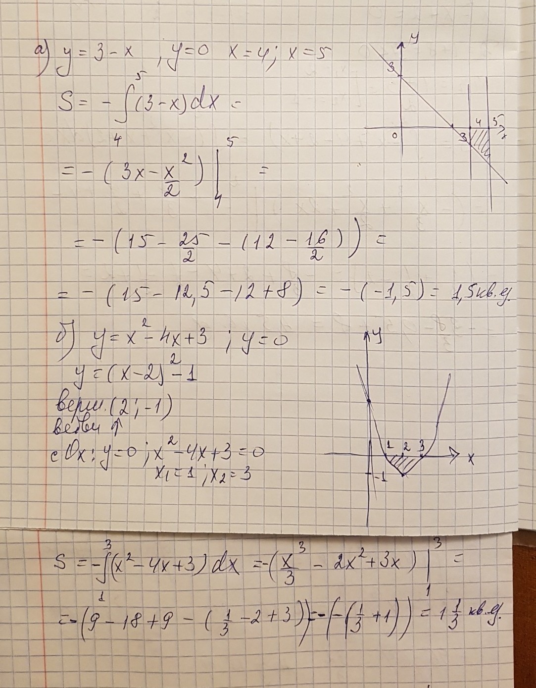 Вычистить площадь фигуры ограниченной линиями y=3-x y=0 x=4 x=5