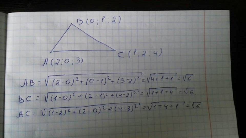 Находим длины сторон треугольника. В данной задаче ровностаронний треугольник.