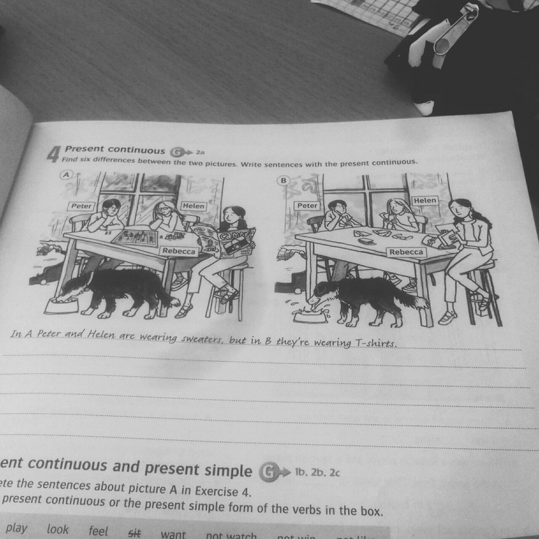 In A Peter and Helen are playing chess, but in B they're playing cards.