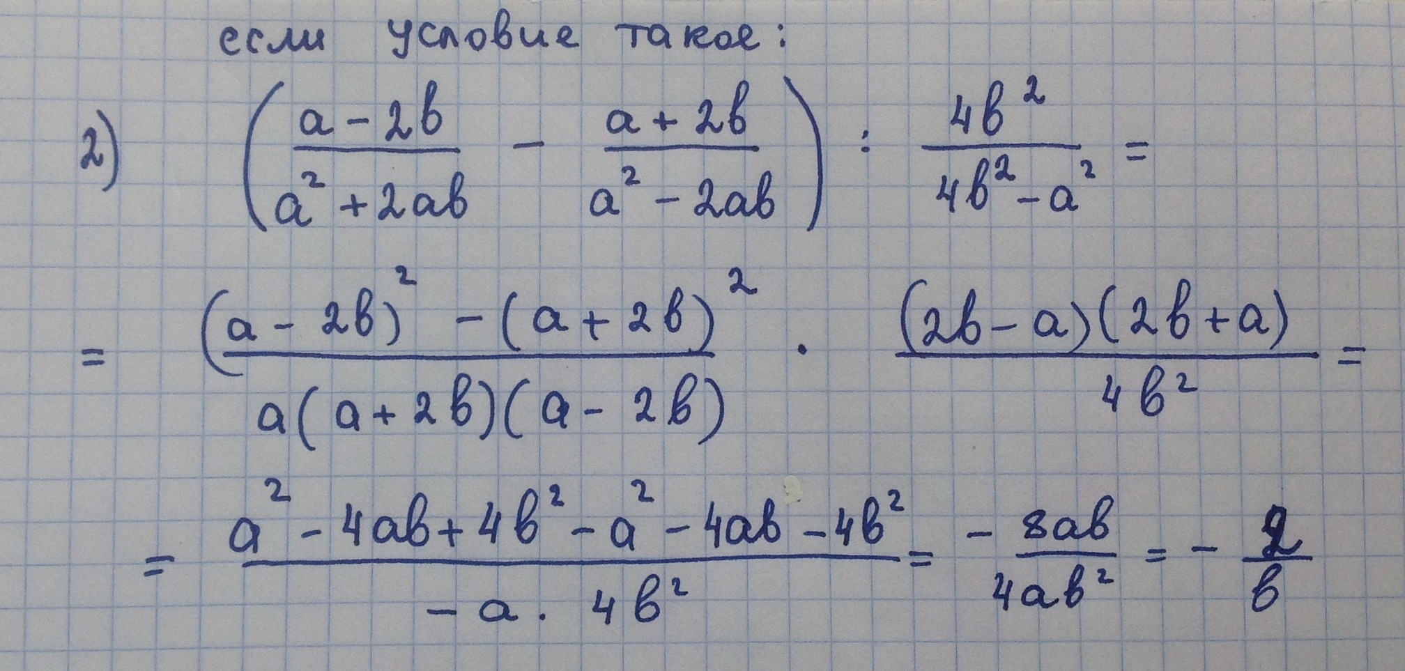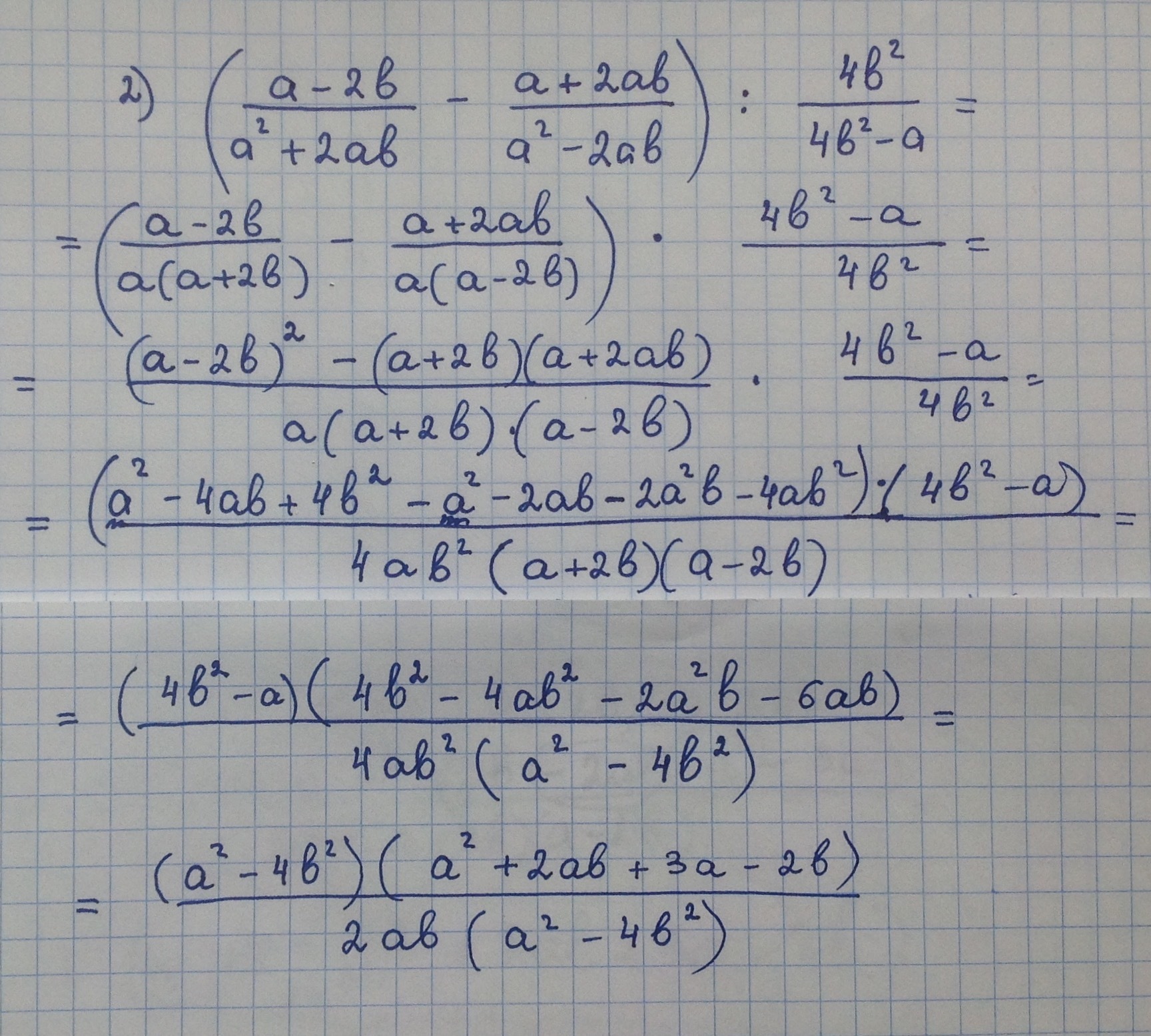 2) (a-2b/a^+2ab - a+2ab/a^-2ab): 4b^/4b^-a