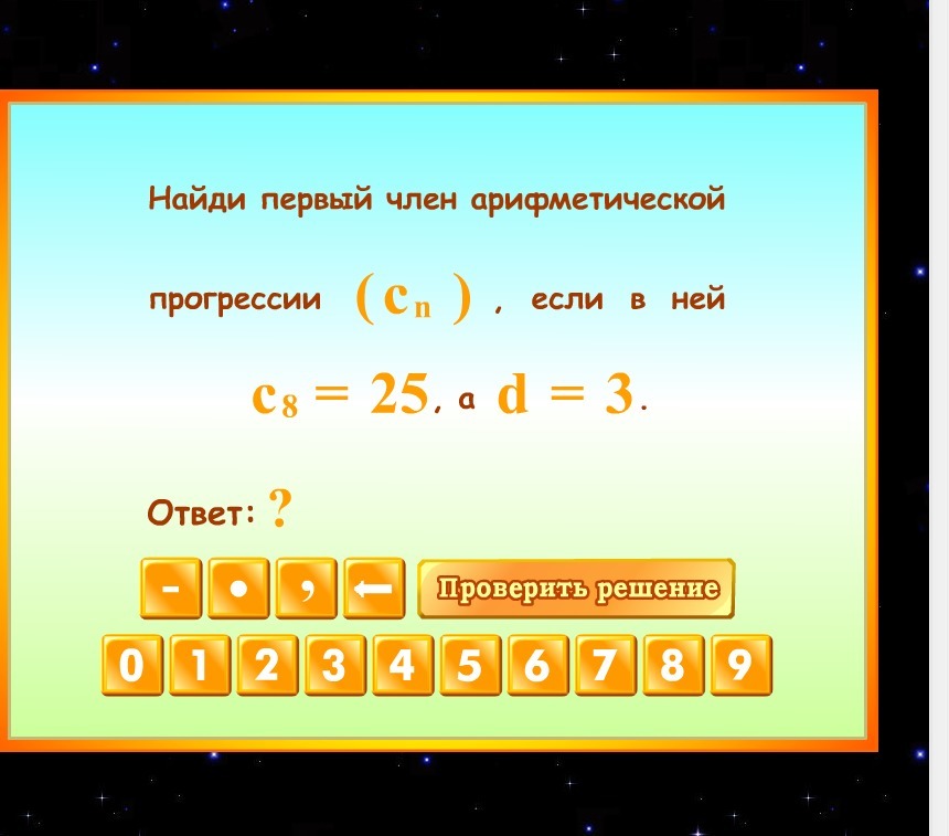 с(8)=с1+7d; c(1)=c(8)-7d=25-3*7=4