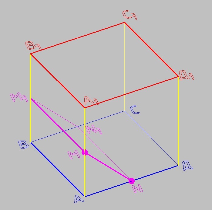 Помогите,пожалуйста, решить задачу по стереометрии. Ребро куба ABCDA1B1C1D1 равно 4. Точки M N- середины рёбер AA1 AD соответственно. найдите площадь сечения, проходящего через точки M N, параллельно прямой АВ.