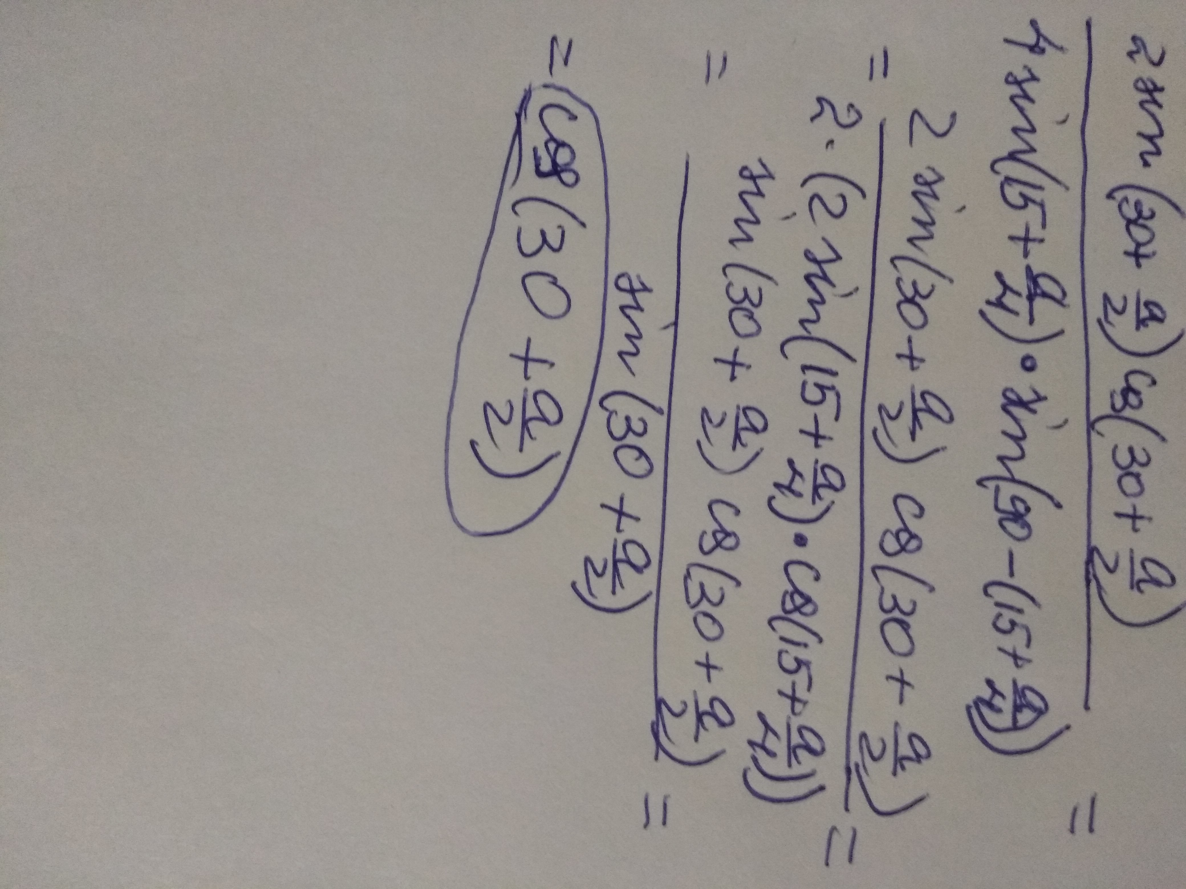 frac{ sin(60 +  alpha ) }{4 sin(15 +  frac{ alpha }{4} ) times  sin(75 -  frac{ alpha }{4} )  } надо упростить!!!