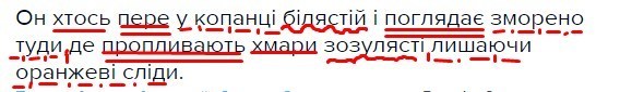 Он хтось пере у копанці білястій і поглядає зморено туди де пропливають хмари зозулясті лишаючи оранжеві сліди.