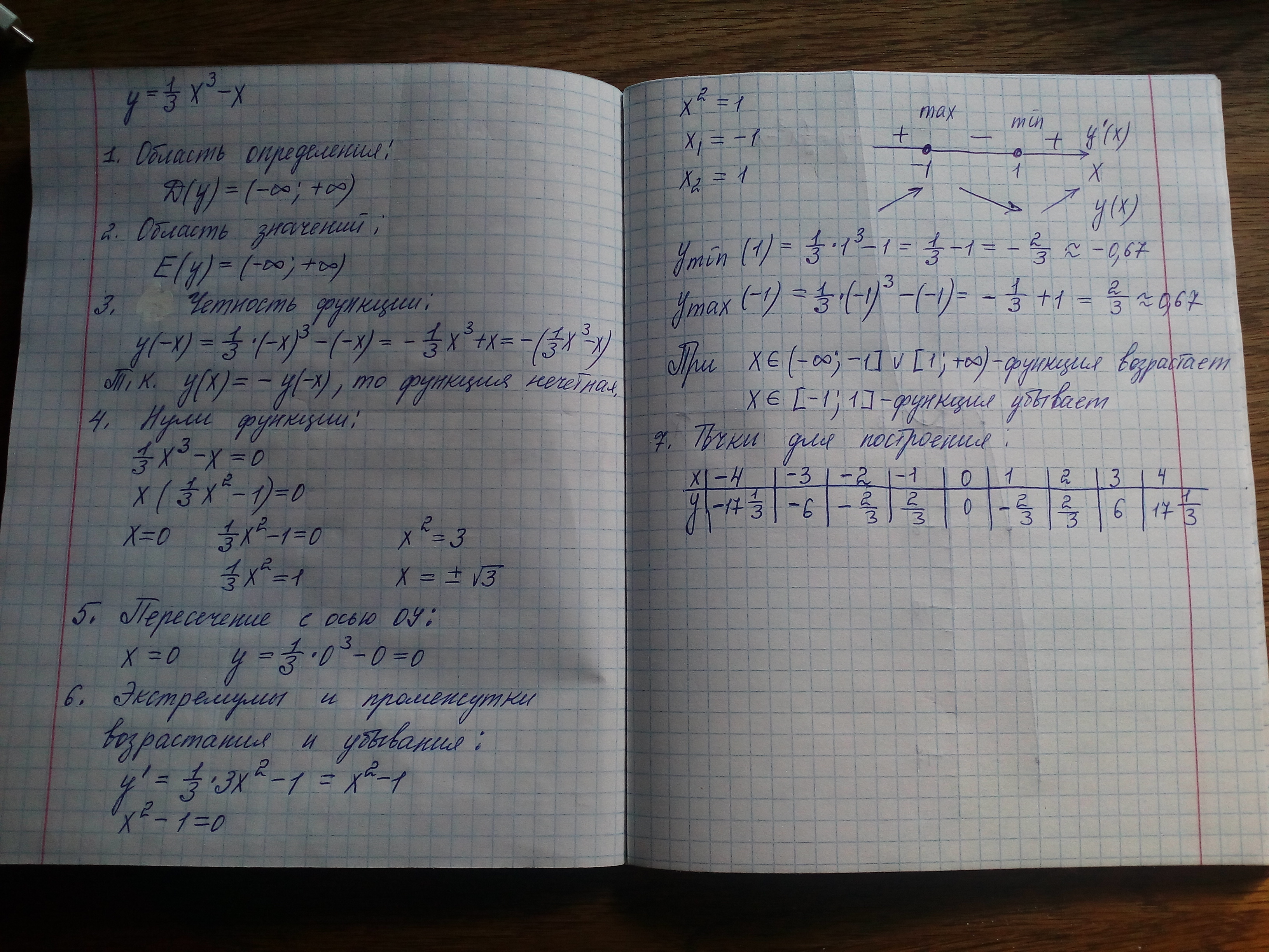 Нужно: Исследовать и построить график данной функции y=1/3x^3-x